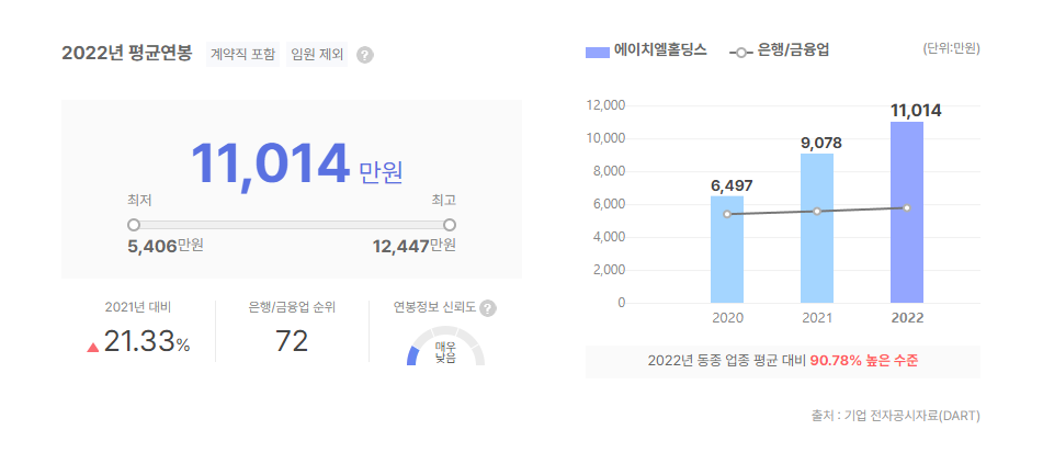 또한, 2022년 기준 전체 평균연봉은 11,014만원으로 확인할 수 있었습니다.